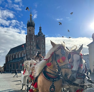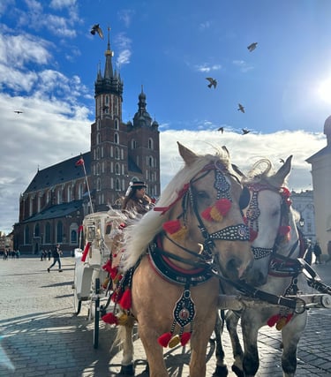 The most famous part of the city is the Main Market Square, the biggest medieval square in Europe. There are street artists, live music performances, small galleries and horses with carriages and café terraces.